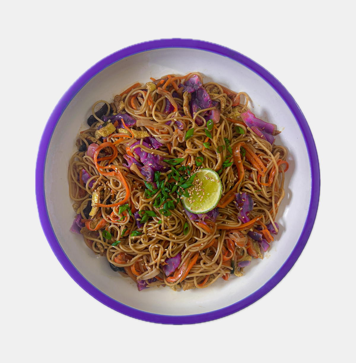 in a large nonstick pan over medium heat, sauté your garlic (1 clove) and ginger (1 inch piece) in 1 tbsp cooking oil. then, cook your proteins as required. add in any vegetables along with a strong grip of salt, and sauté for 2-3 minutes. once they are both 80% of the way finished, add your noodles (1 package) and prepared sauce, along with reserved cooking water (¼ cup) as needed to adjust the thickness. stir fry for 1-2 minutes, until the sauce clings to the noodles. season to taste with salt and white pepper.